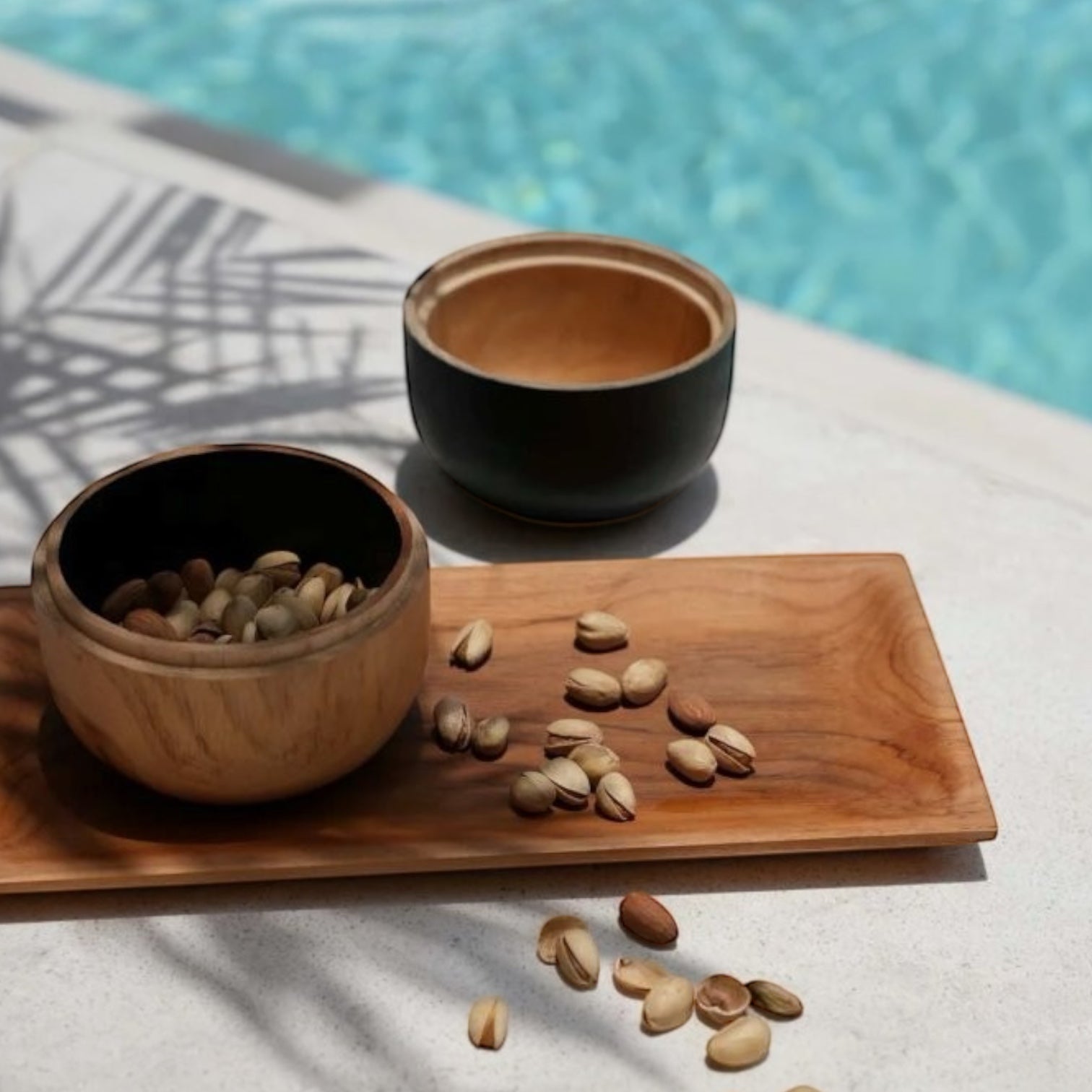 Wir lieben das schlanke und schöne Design der multifunktionalen Teakholzschalen.