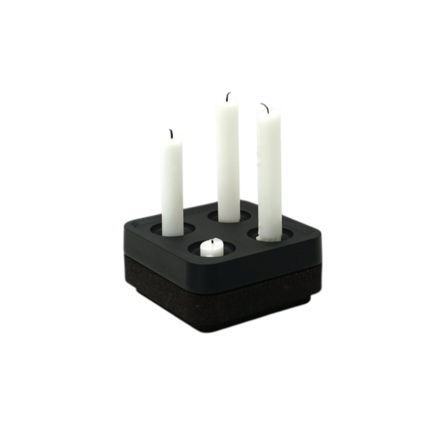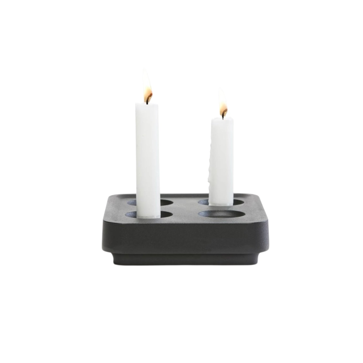 Diese Version mit vier Kerzenhaltern für Spitzkerzen oder Teelichter des Kerzenhalters „Stumpastaken“ lässt sich leicht platzieren und ist ein Dekorationsstück.