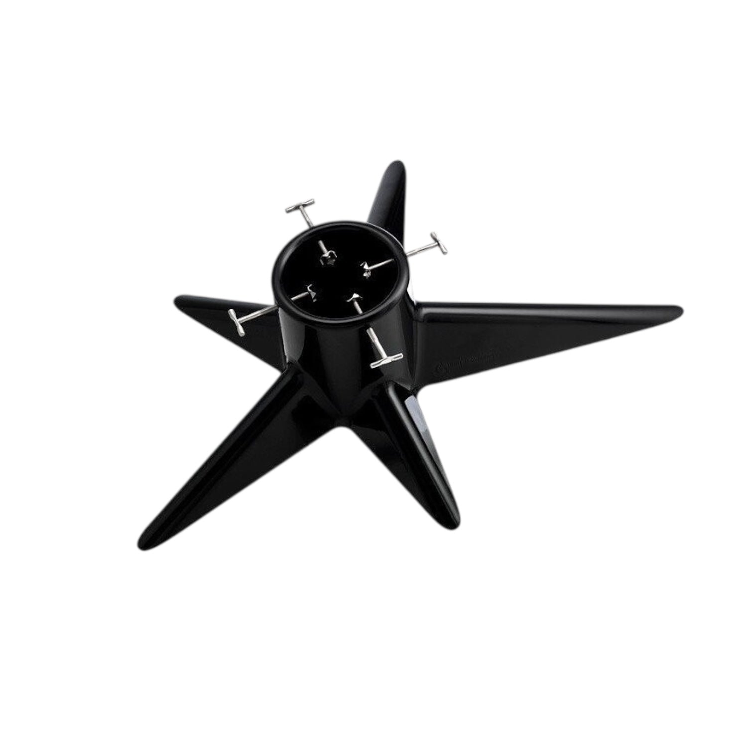 Der von Pascal Charmolu entworfene Weihnachtsbaumständer in Schwarz glänzend, ist ein echter Blickfang.