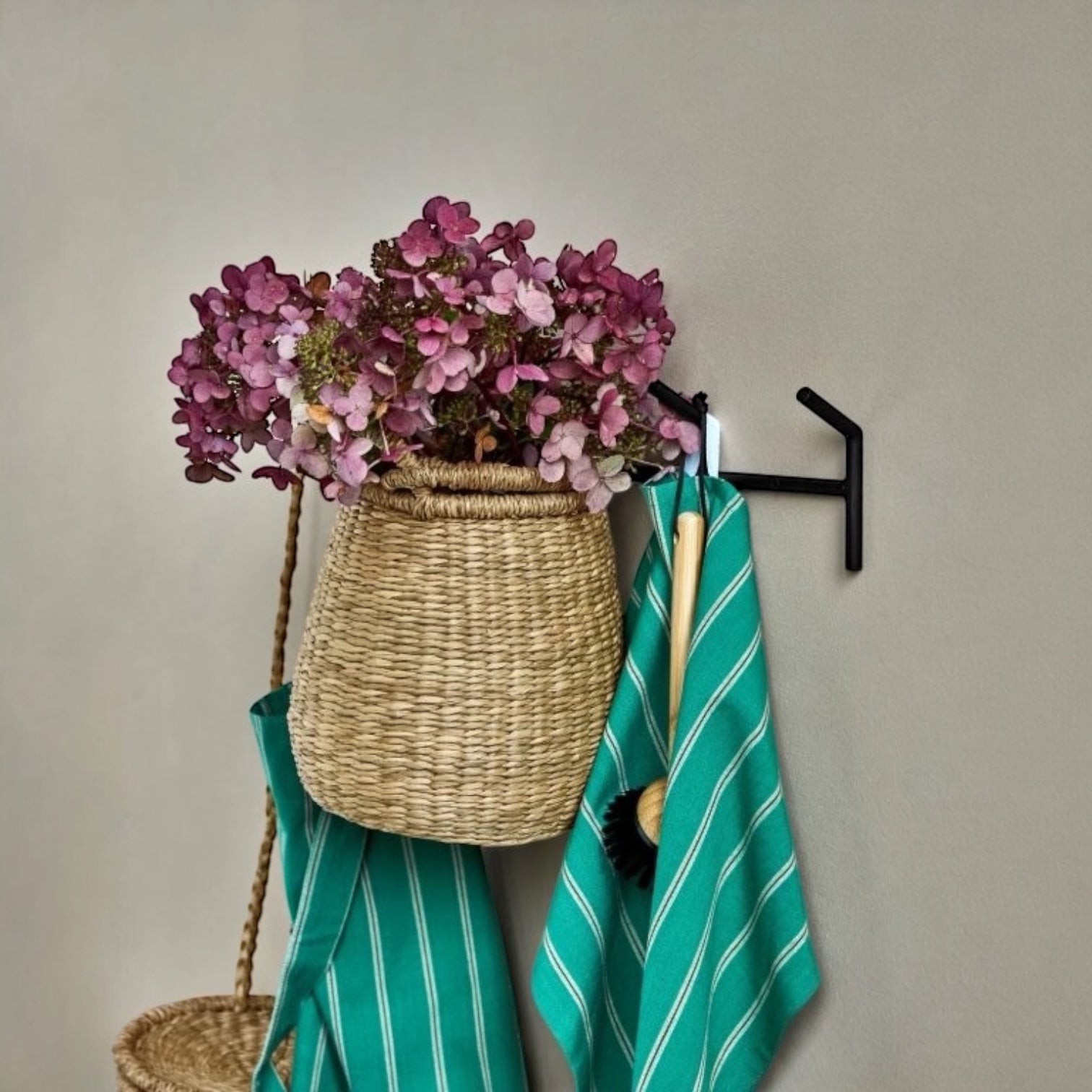 Mit fünf Haken und einer minimalistischen Form fügt sie sich harmonisch in verschiedene Einrichtungsstile ein und bietet Platz für Jacken, Handtücher oder Körbe.