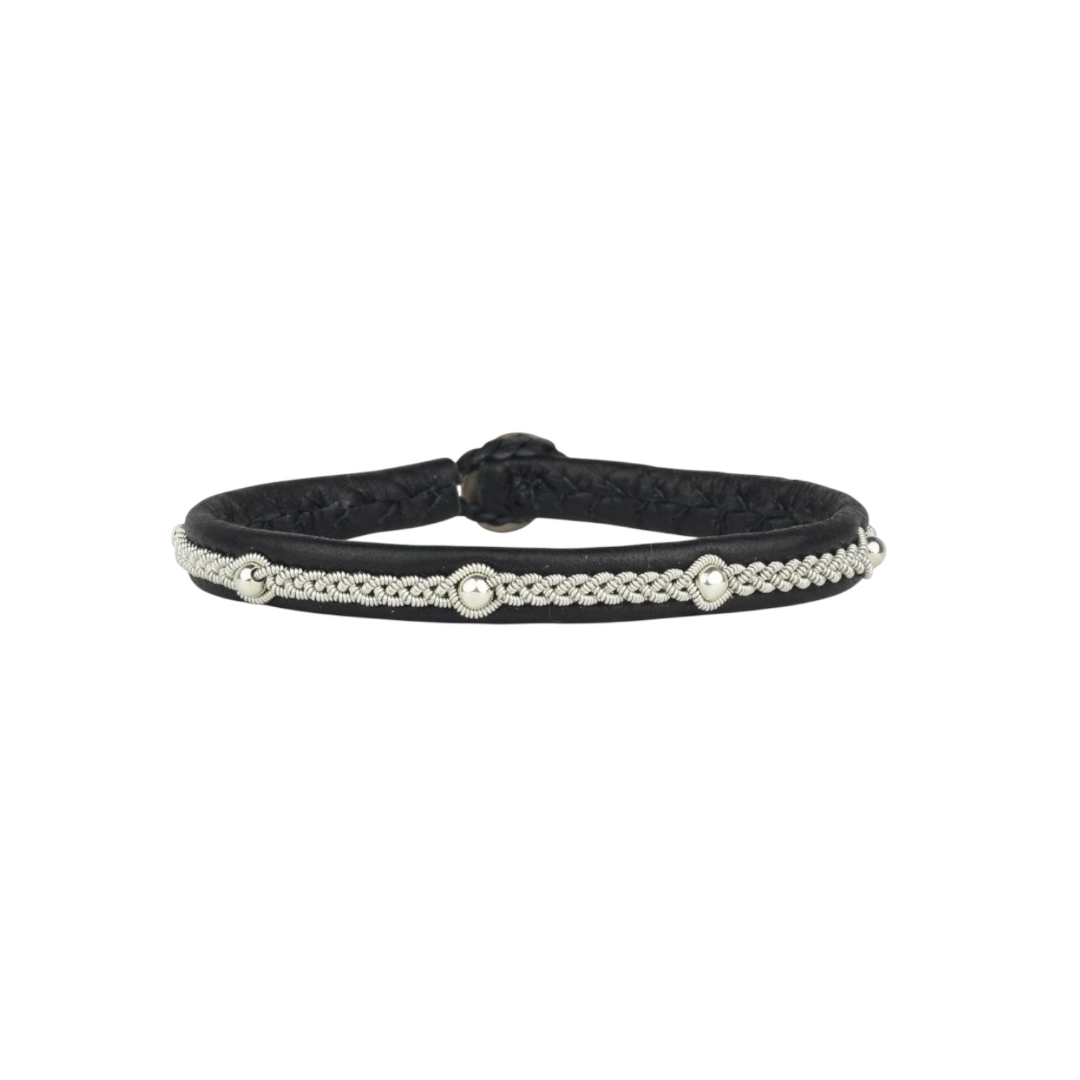 Das beliebteste mit Sterlingsilberperlen. Ein weiteres Band, das bei keinem Mix fehlen darf. 3 mm große Perlen auf zarter Flechtung. Breite ca. 0,6 cm.